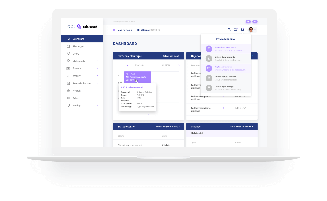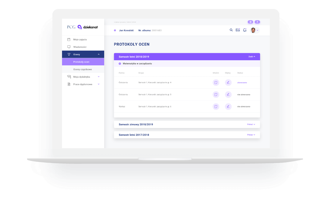 Obsługa procesu dydaktycznego, zgodnie z aktualnie obowiązującymi przepisami prawa i w oparciu o standard opracowany przez kilkadziesiąt wiodących, polskich uczelni.
