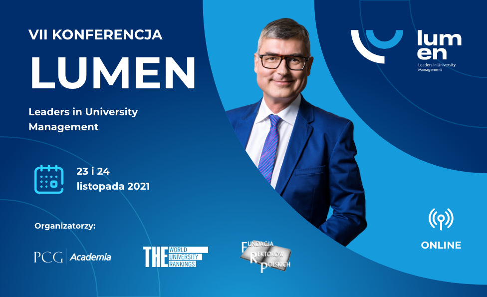 Konferencja LUMEN to największe forum debaty na temat zarządzania szkolnictwem wyższym w Europie Centralno-Wschodniej. Zainicjowany przez PCG Academia w 2015 roku LUMEN, zrzesza setki osób zaangażowanych w profesjonalne zarządzanie uczelniami – rektorów, kanclerzy i menedżerów. Dziś LUMEN zmienia się w taki sposób, w jaki zmienia się szkolnictwo wyższe w Polsce – rozwija się międzynarodowo, dygitalizuje i zacieśnia współpracę z biznesem. Do grona Organizatorów konferencji obok PCG Academia i Fundacji Rektorów Polskich dołącza wydawca najbardziej prestiżowego rankingu szkół wyższych na świecie – Times Higher Education.